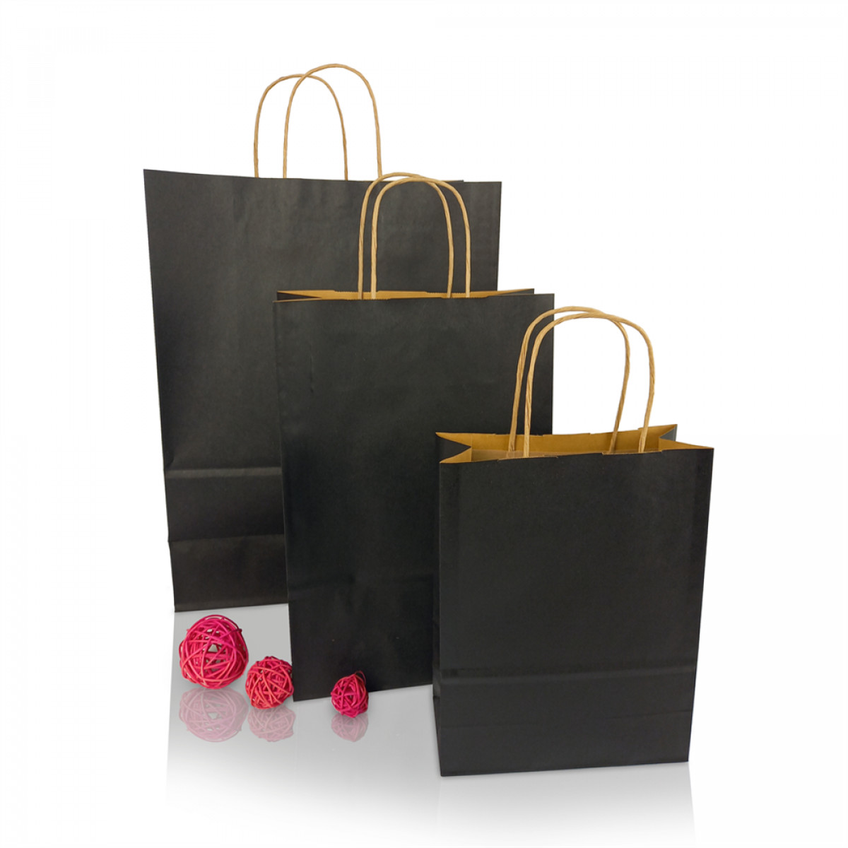 Sodrottfüles papírtáska 185x240mm 80mm talp S méret 250 db/doboz, fekete bemutatása