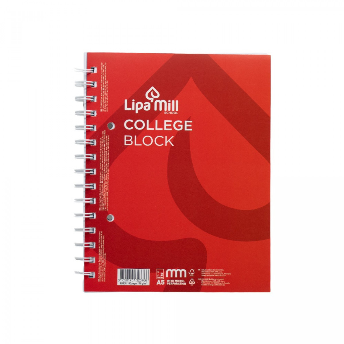 Spirálfüzet A5, 70lap vonalas perforált lyukasztott Lipa Mill vegyes színekben