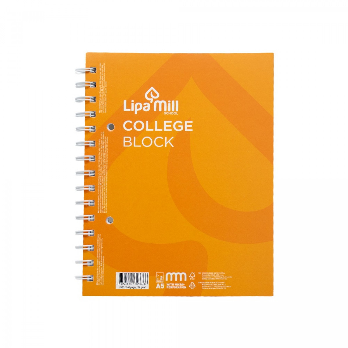 Spirálfüzet A5, 70lap vonalas perforált lyukasztott Lipa Mill vegyes színekben bemutatása