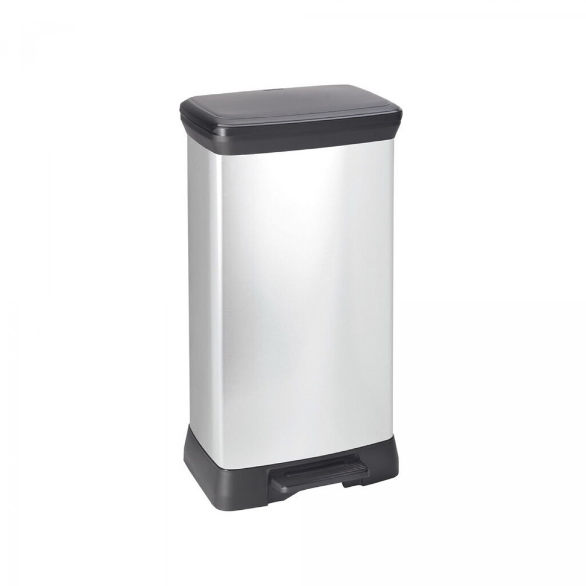 Szemetes kuka pedálos fémhatású műanyag 50 literes fekete/ezüst Deco Bin_Curver bemutatása