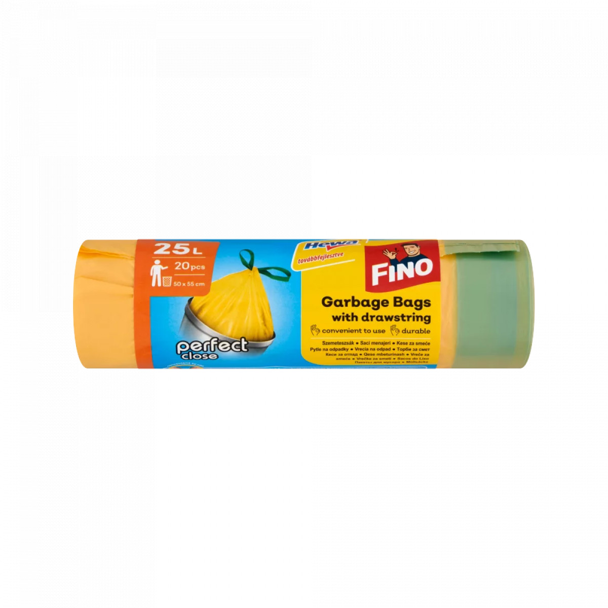 Szemeteszsák zárószalagos 25 liter 50 x 55 cm 20 db/tekercs Fino sárga