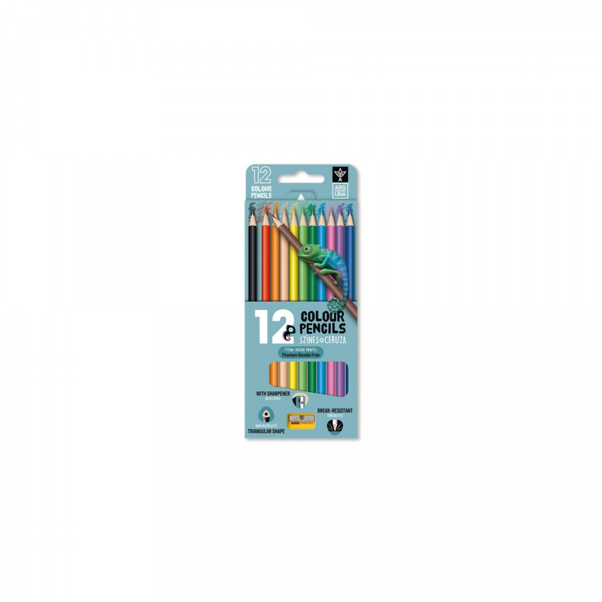 Prémium minőségű ARS UNA színes ceruza készlet hegyezővel. Kényelmes, háromszögletű kialakítás, 12 ragyogó, élénk szín, törésbiztos hegy. Titánium-dioxid mentes ceruzatest. A legklasszabb kombináció, hiszen a legszebb rajzokhoz a képzelőerő mellett a kedvenc ceruzákra is szükség van! Katalóguskód: 66139