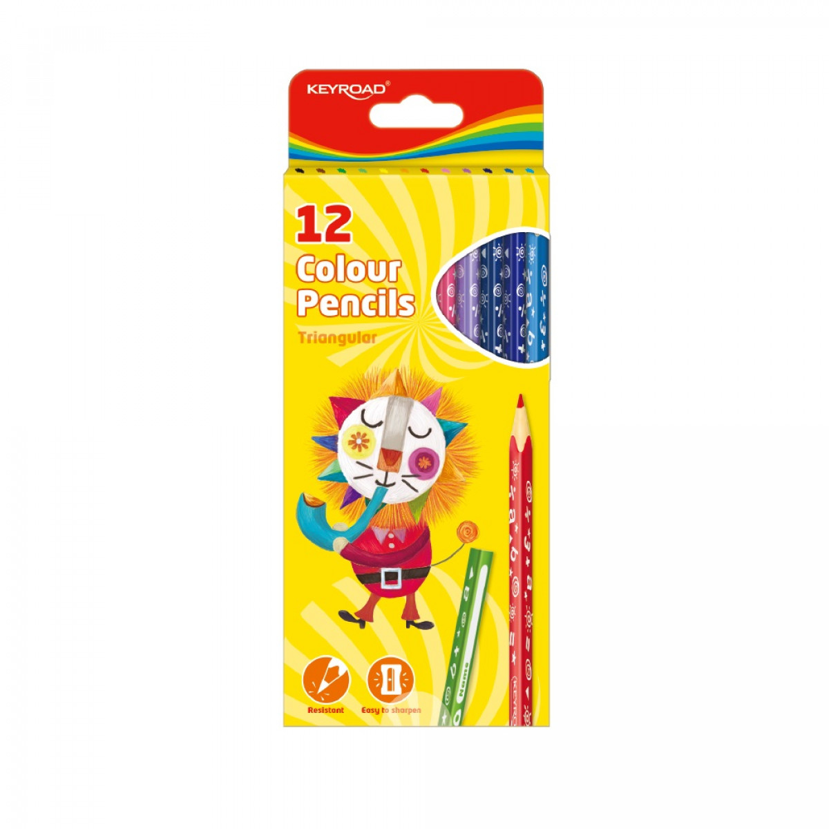 Színes ceruza készlet háromszögletű Keyroad 12 klf. szín