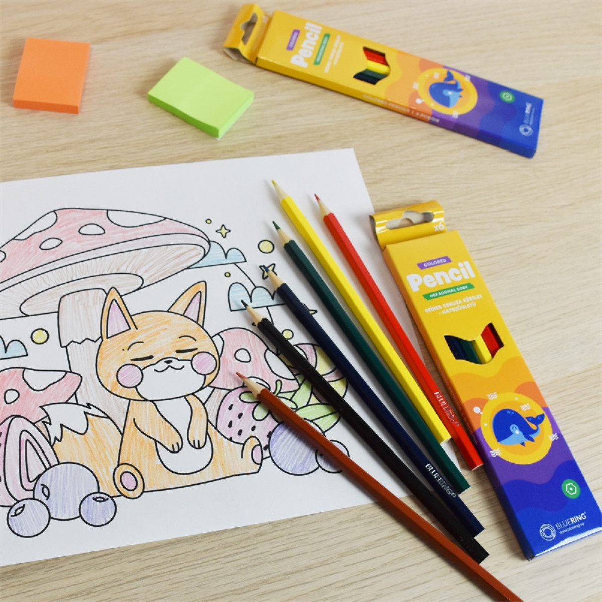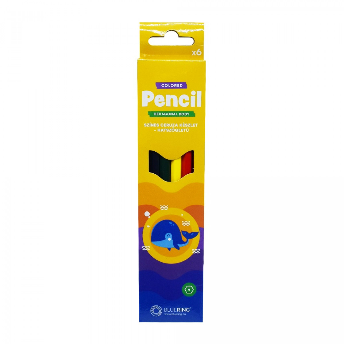 Színes ceruza készlet, hatszögletű Bluering® 6 klf. szín, bemutatása