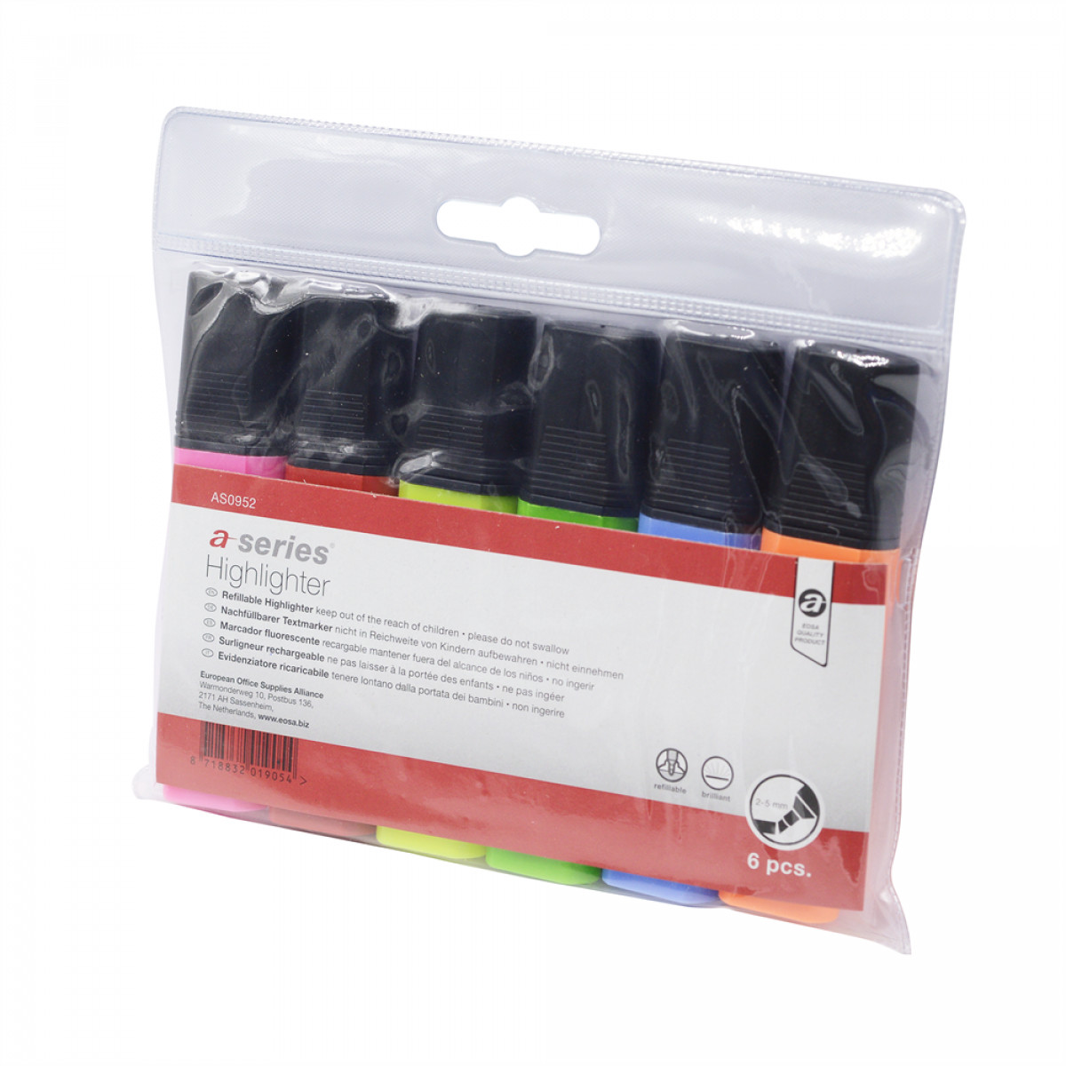 Szövegkiemelő 1-5mm, vágott hegyű,lapos test, A-Series 6-os készlet