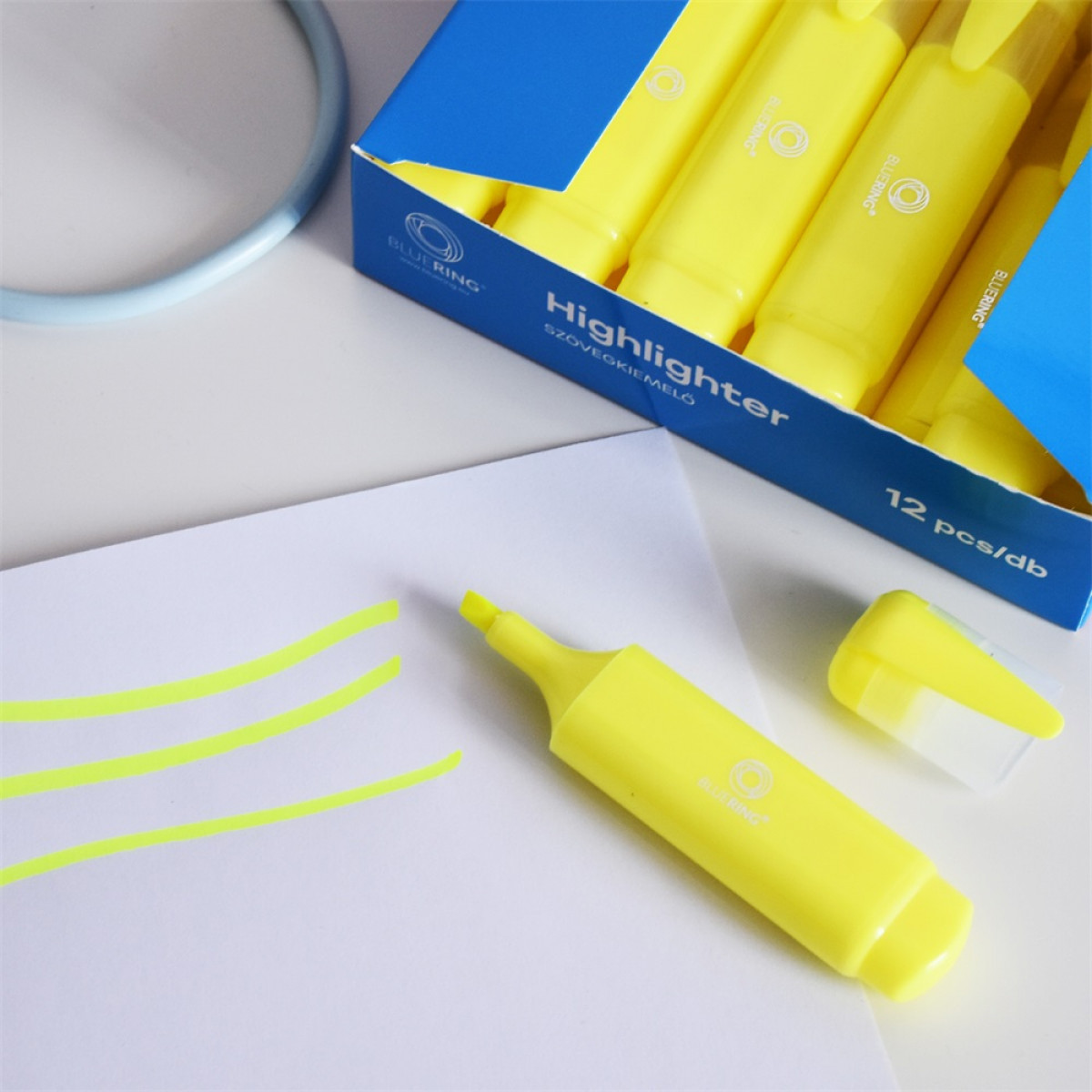 Szövegkiemelő lapos test Bluering® sárga bemutatása