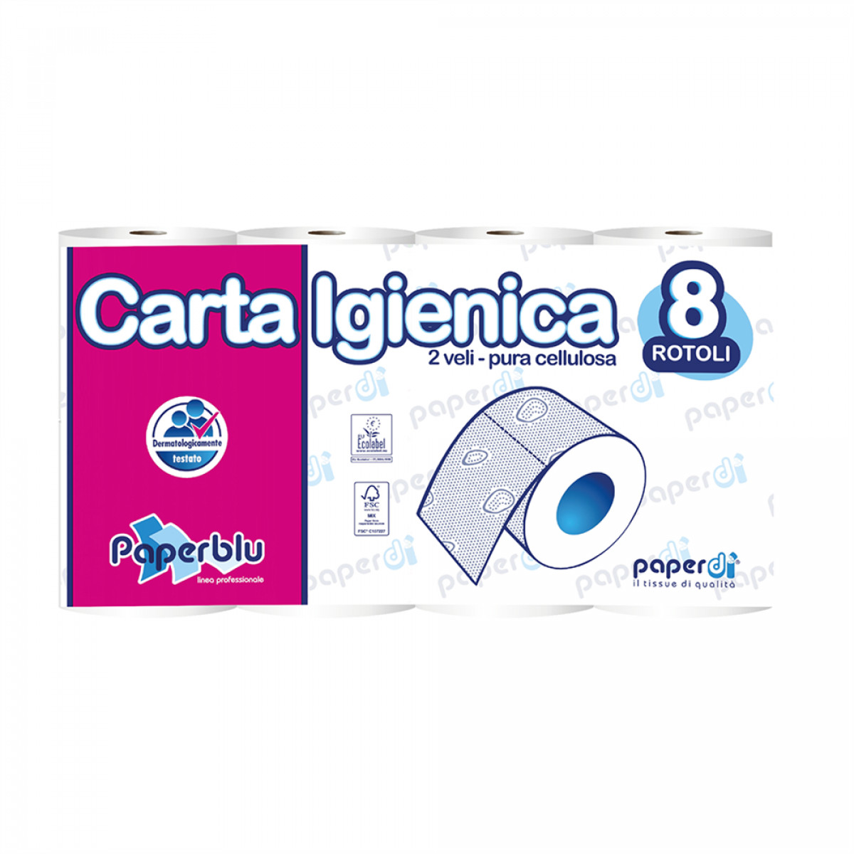 Toalettpapír 2 rétegű kistekercses 100% cellulóz 150 lap/tekercs 8 tekercs/csomag Paperblu Carta Igienica_Paperdi bemutatása