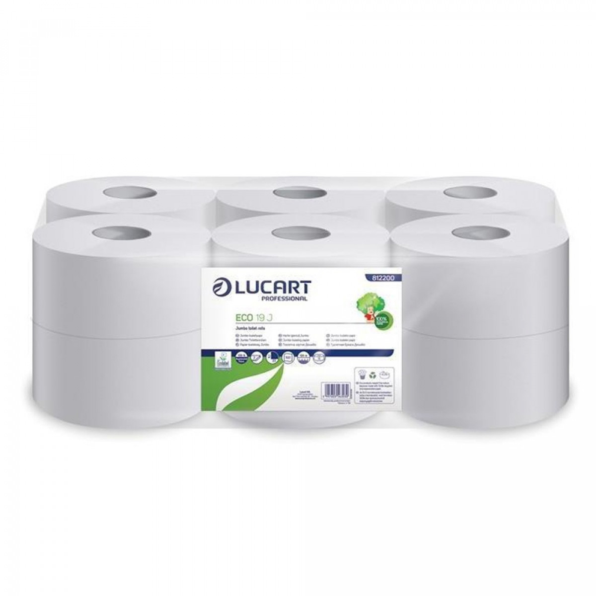 Toalettpapír 2 rétegű közületi átmérő: 19 cm 12 tekercs/karton 19 J EcoLucart_812200 fehér bemutatása