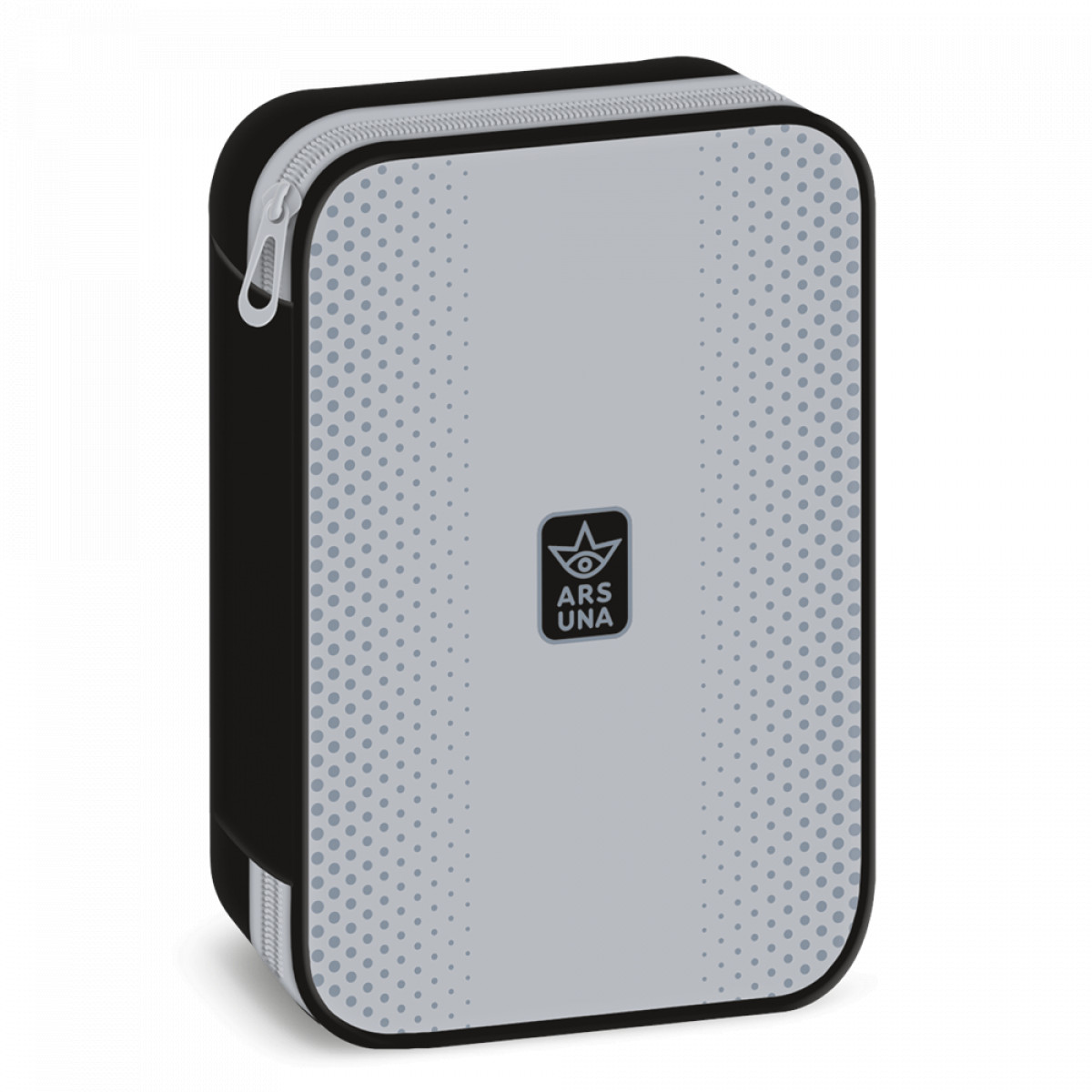 Többszintes, töltetlen, cipzáras tolltartó. Belül textillel bevont merev lapokkal, gumis kialakítással 30 ceruza számára az írószerek tárolásához és egy cipzáras belső zsebbel.