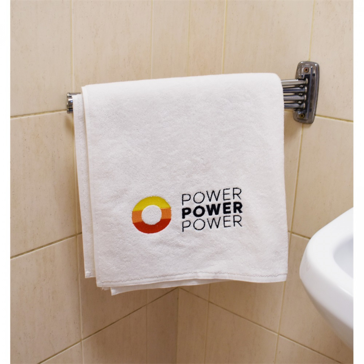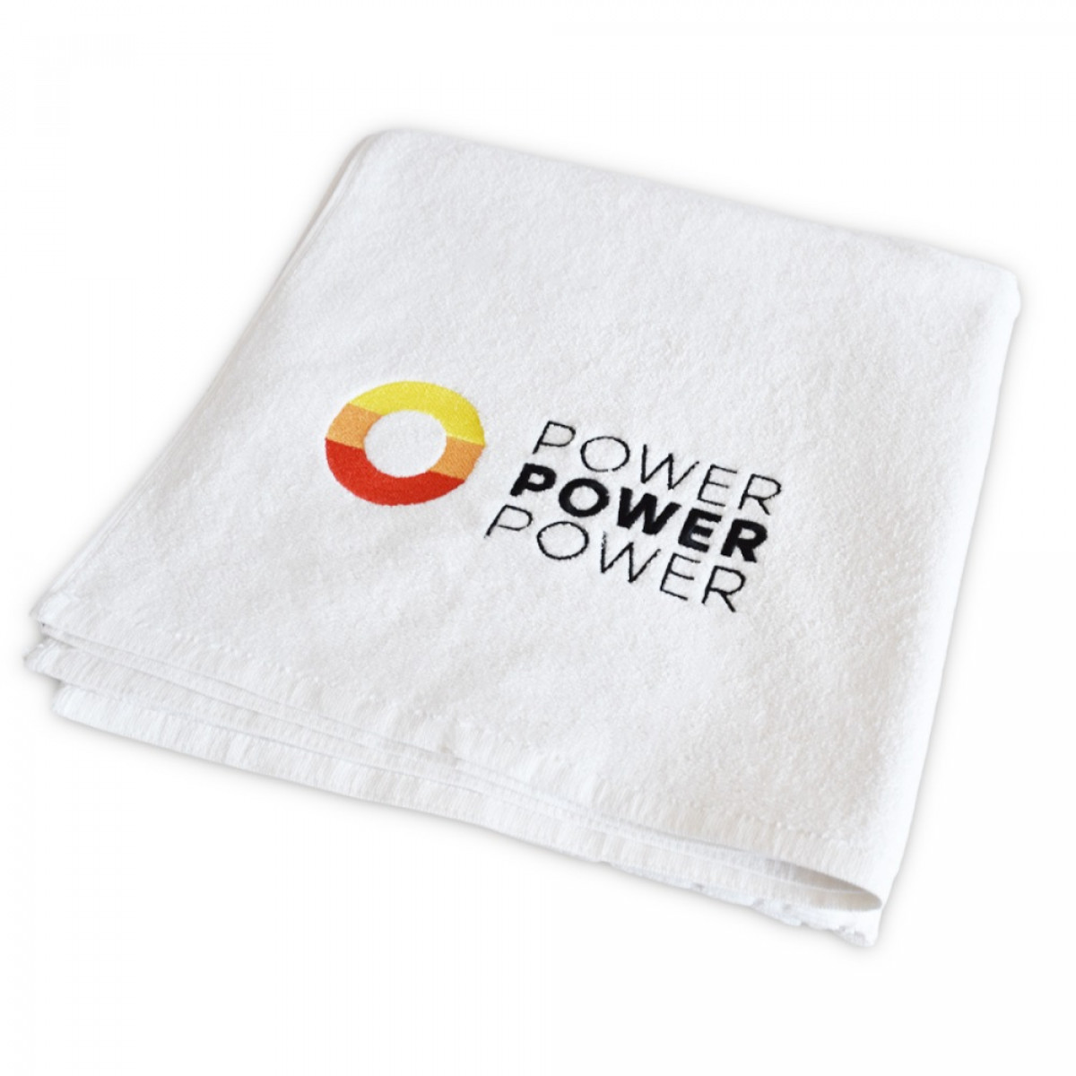 Fehér törölköző, amely 70 x 140 cm-es mérete ideális kéztörlőként vagy arctörlőként való használatra.
