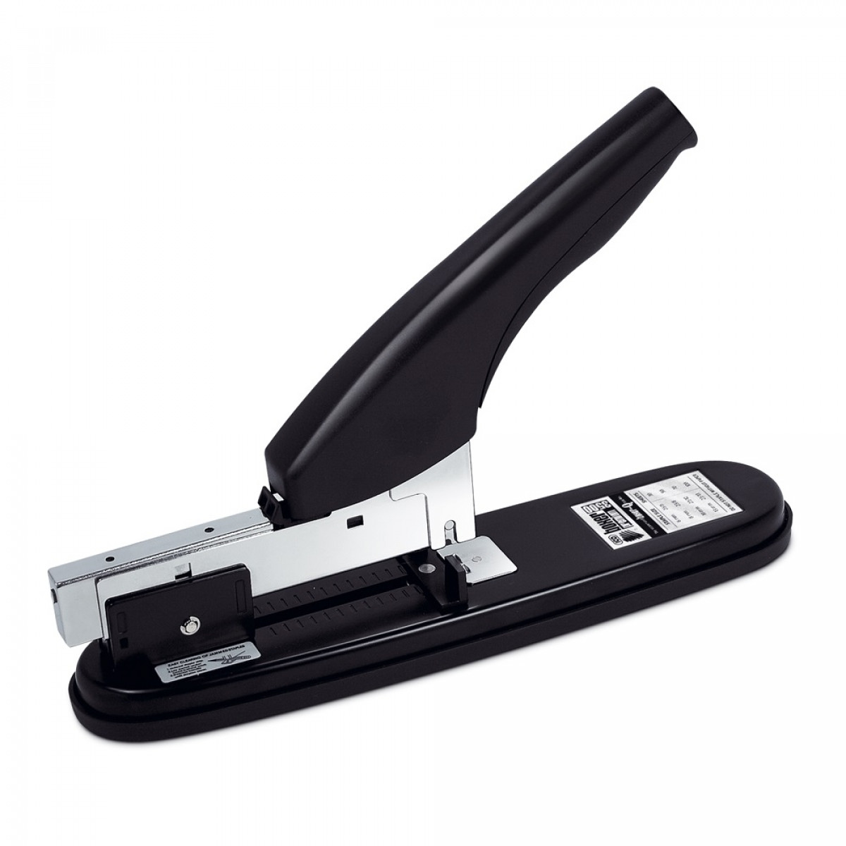 Elöltöltős, nagyteljesítményű fűzőgép, állítható fűzési mélység, gumibetéttel ellátott csúszásgátló talp, kapocs újratöltő rugós szerkezet. Fűzési mélység: max.7-70 mm. Egyszerre összefűzhető lapok száma kapocsmérettől függően: 23/6 kapoccsal - 2-30 lap; 23/8 kapoccsal - 30-50 lap; 23/10 kapoccsal - 30-70 lap; 23/13 kapoccsal - 50-100 lap. Katalóguskód: 17908