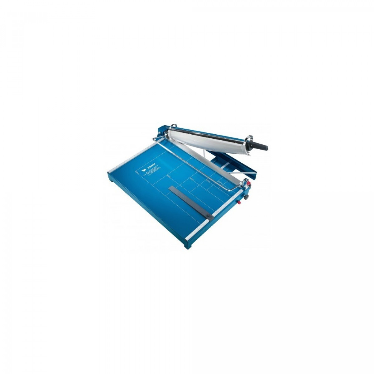 DAHLE 567 karos papírvágó gép, vágási szélessége 550 mm. Vágási kapacitás 35 db A4-es formátumú lap. A kés automatikus élvédője garantálja a munkabiztonságot. Ajánlott igényesebb munkakörökben, magas követelményekkel a minőségre és a feldolgozott mennyiségre. formátum: A3 (a vágás hossza 550 mm) a vágóasztal anyaga: acéllemez vágható rétegvastagság: 3,5 mm lapkapacitás: 35 A4/70g/m2 méretek: 600 x 365 mm papírleszorítás: kézi előnyomtatott formátumok: DIN, két derékszögű cm-mérő beállítható külső határoló (lehetővé teszi a vágandó anyag mérését oldalról a vágóasztalon kívül vagy a papírcsíkok vágásának beállítását) része a rögzíthető vonalzó a vágandó anyagot fémkar szorítja le és rögzíti a vágóasztalon rögzíthető derékszög a kés kiváló minőségű Solingen acélból készült a vágóasztal felületét magas hőmérsékleten égetett festék borítja, amely ellenálló kopással vagy karcolással szemben védő elem: az automata elforduló késvédő Katalóguskód: 30083
