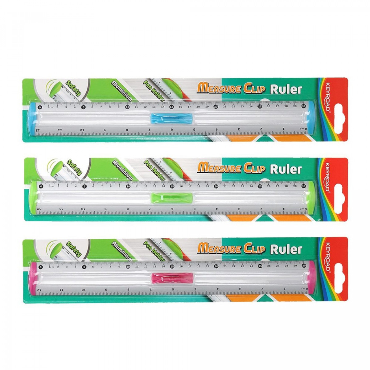 Vonalzó 30 cm, fém Keyroad Measure Clip vegyes színek bemutatása