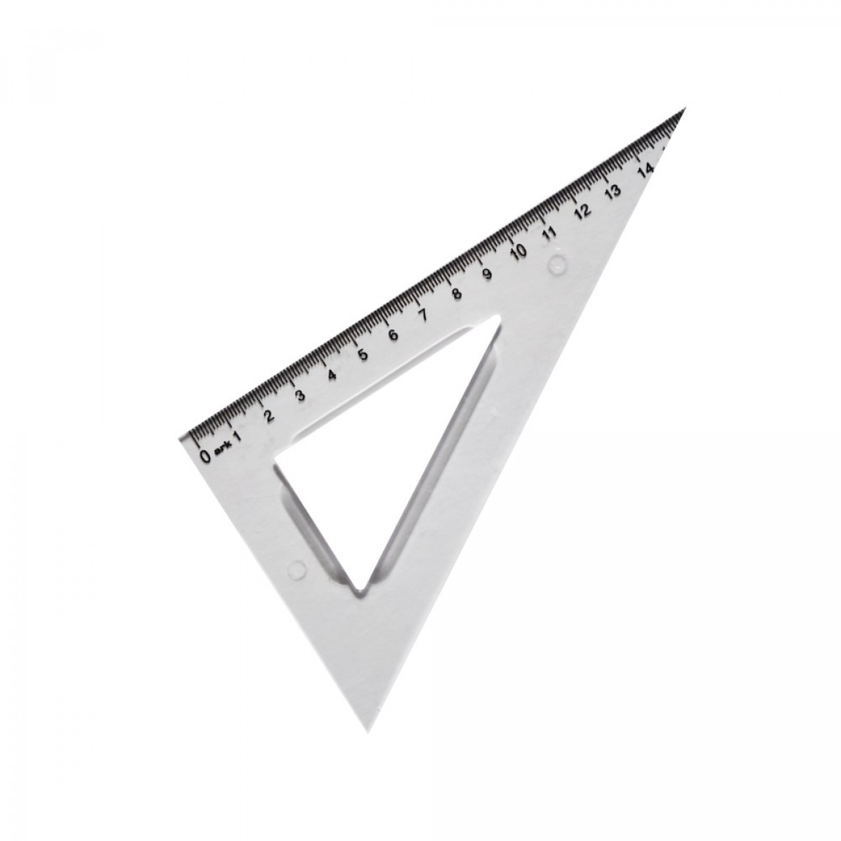 Átlátszó, víztiszta, műanyag, 90-45-45 fokos háromszög vonalzó, iskolai és irodai felhasználására.